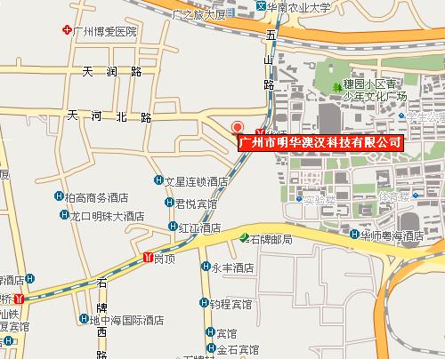 地理位置:广州明华澳汉公司位于天河北路与五山路口交界处,高科大厦A座2007室。乘车路线:公车:可乘22路、78路、130路、191路、813路、B10路、B11路、B17路等公交车到师大后门站或五山路口站下车。(马路对面)地铁:可乘三号线到华师站B出口,出站后往前走30米左右。
